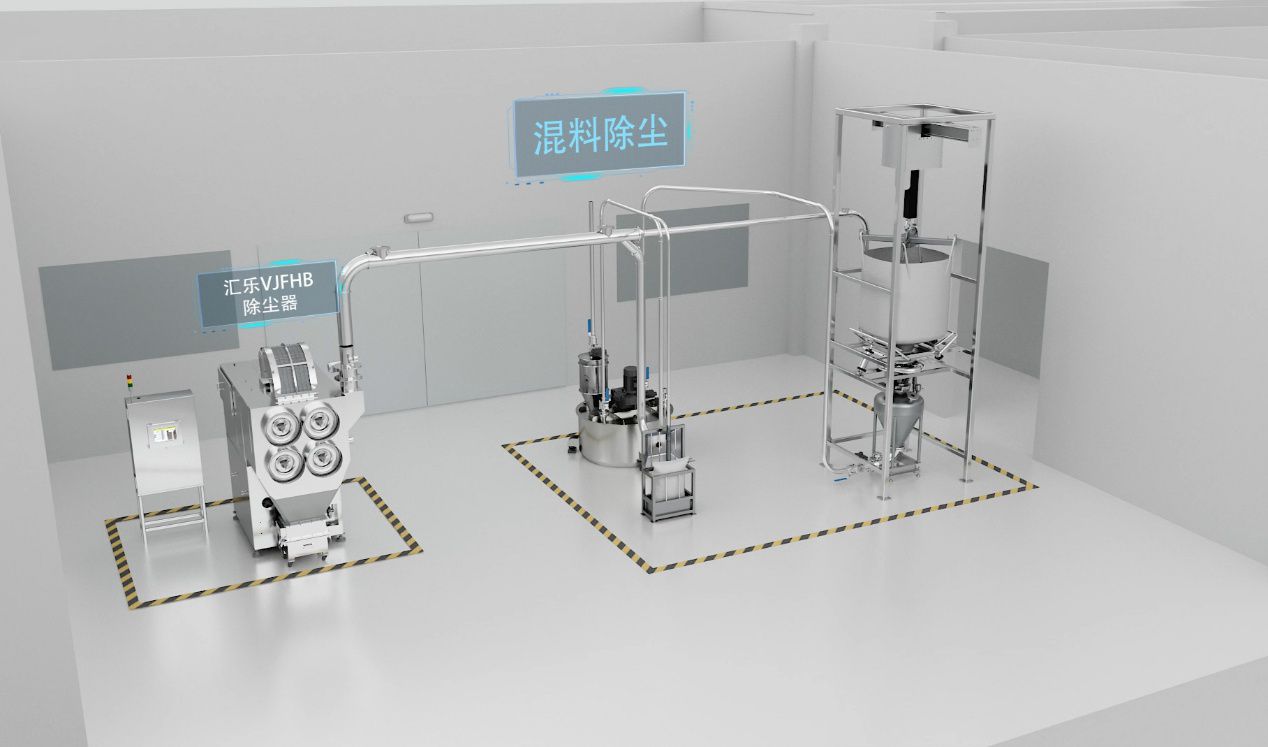 混料作為鋰電池材料準備的第一步,也是極其關鍵的一步。其主要流程有配料、攪拌、卸料、包裝,這工藝都有細微粉末揚起,若不及時處理,不僅污染車間環境,而且存在爆炸隱患,且對現場生產人員產生危害。針對此類工況,可選用我司VJGFB系列除塵器。